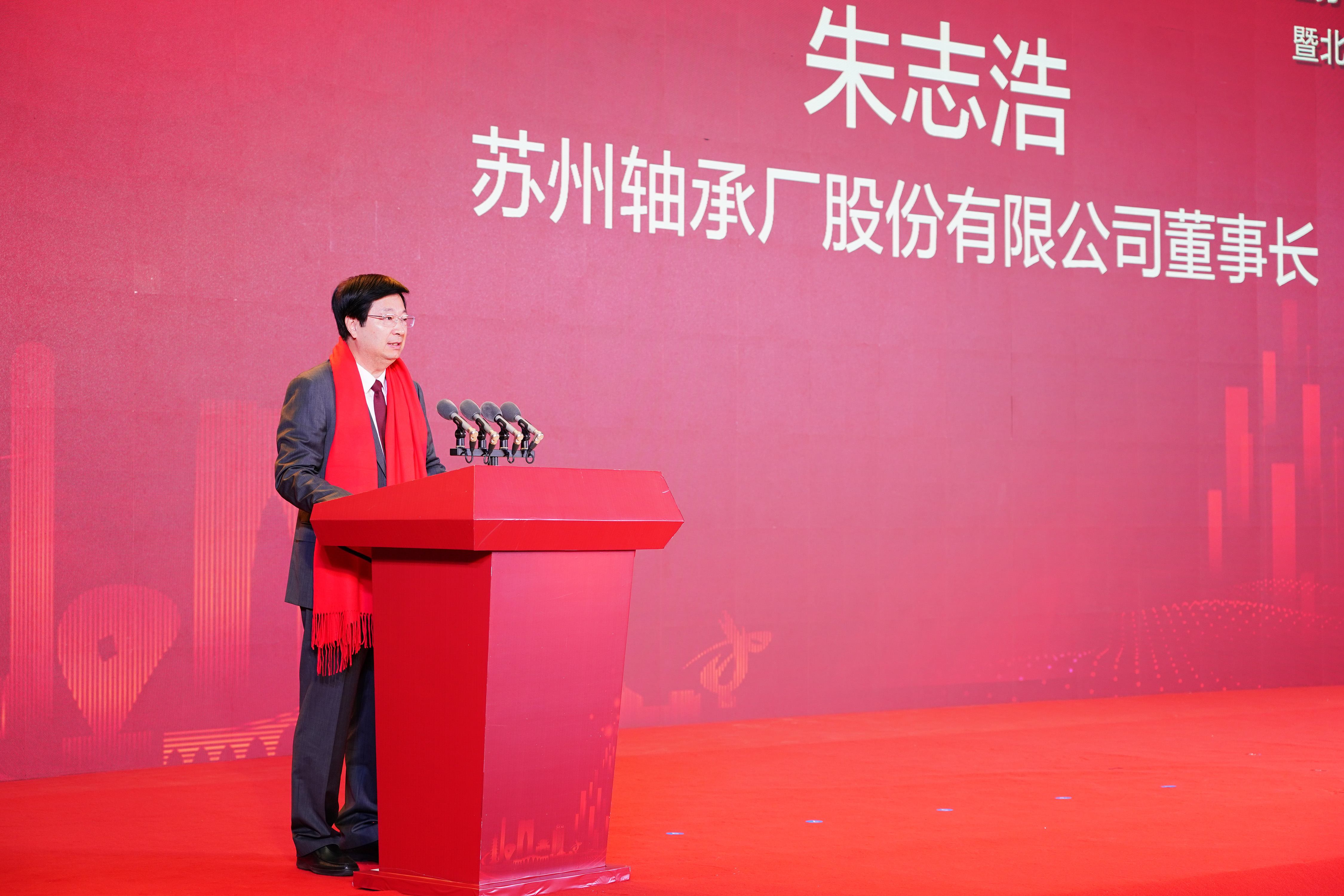 蘇軸股份董事長朱志浩作為蘇州市4家首批北交所上市企業代表致辭。朱總表示,在相關方的支持下,自首批登陸新三板以來,公司先后完成了首批進入創新層、首批晉級精選層、首批上市北交所的三級跳,登上了資本運作、產業發展的新臺階。今后公司將繼續推進制度流程創新、吸納更多優秀人才,持續加大研發技改投入,穩步進軍高端市場,不斷提升員工滿意度和客戶滿意度,以實實在在的業績回報股東,切實提高“中華”品牌知名度,努力實現國有資本保值增值使命。